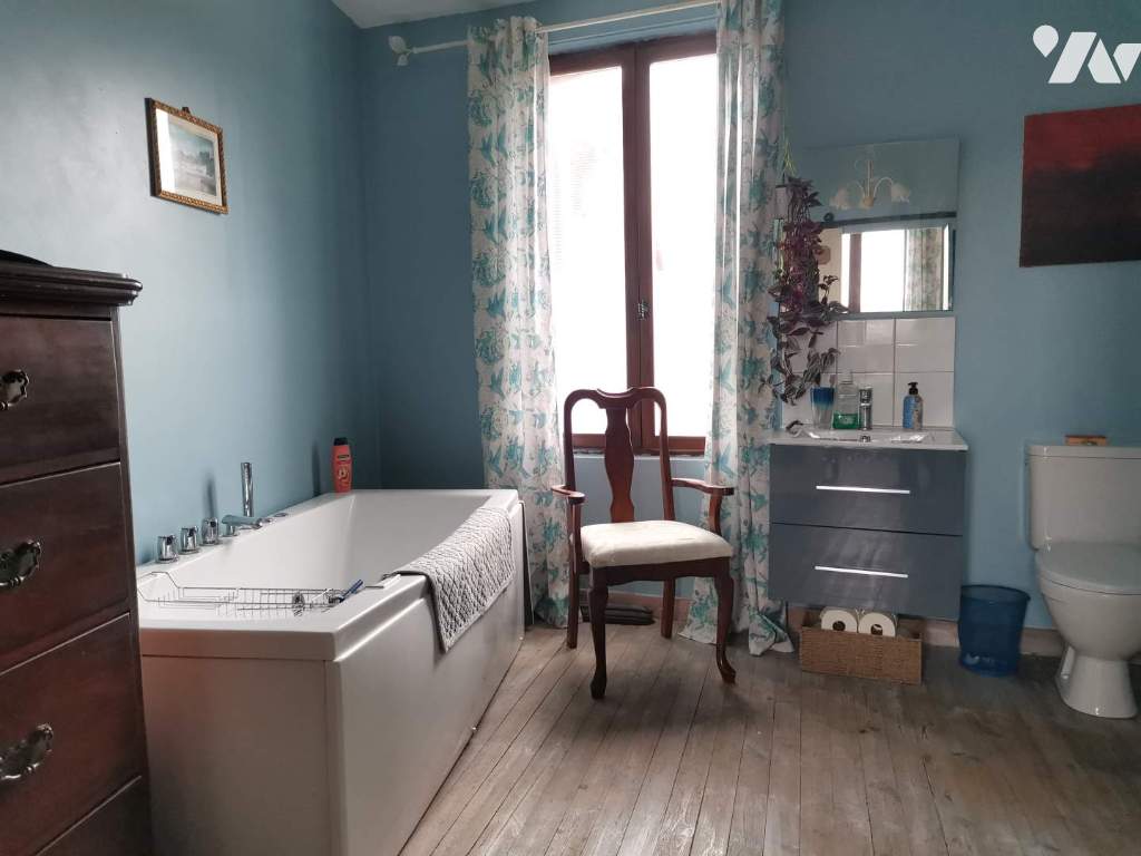 Maison : Rez-de-chaussée - Hall d'entrée, cuisine, couloir, buanderie, salon, chambre avec douche, lavabo et wc, salon/salle à manger. 1er étage - Couloir, 4 chambres, une petite chambre, 2 salles de bains, dressing. Grenier aménageable. Cave.